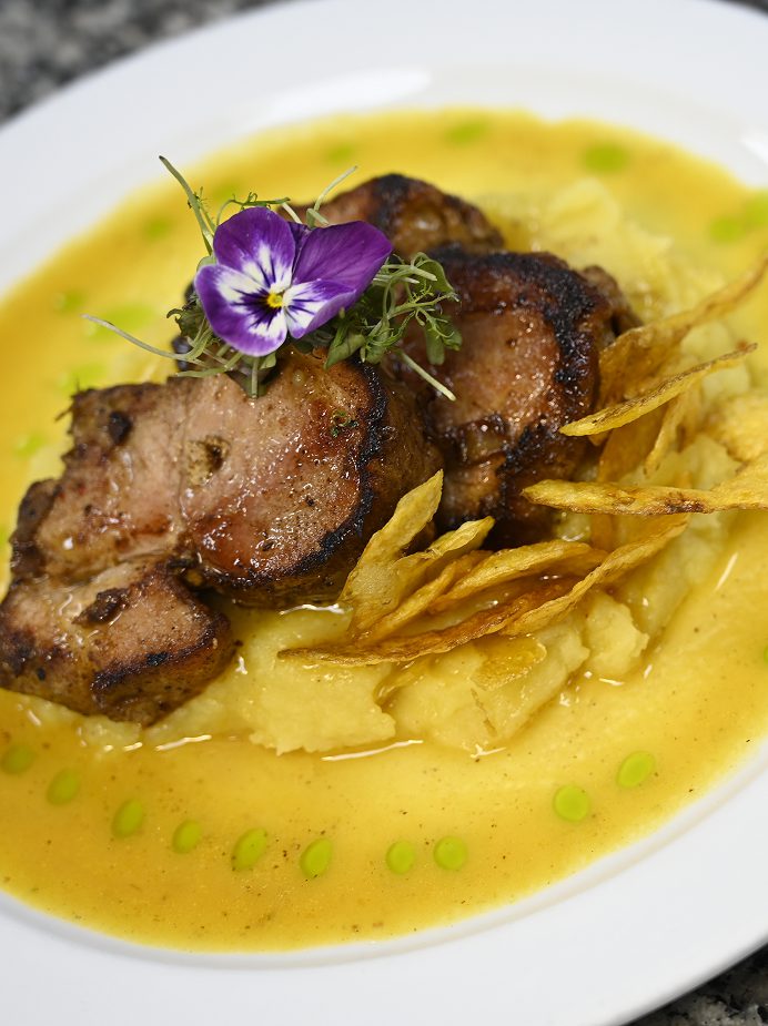 Pescado fresco de temporada flambeado con tequila, acompañado de puré…