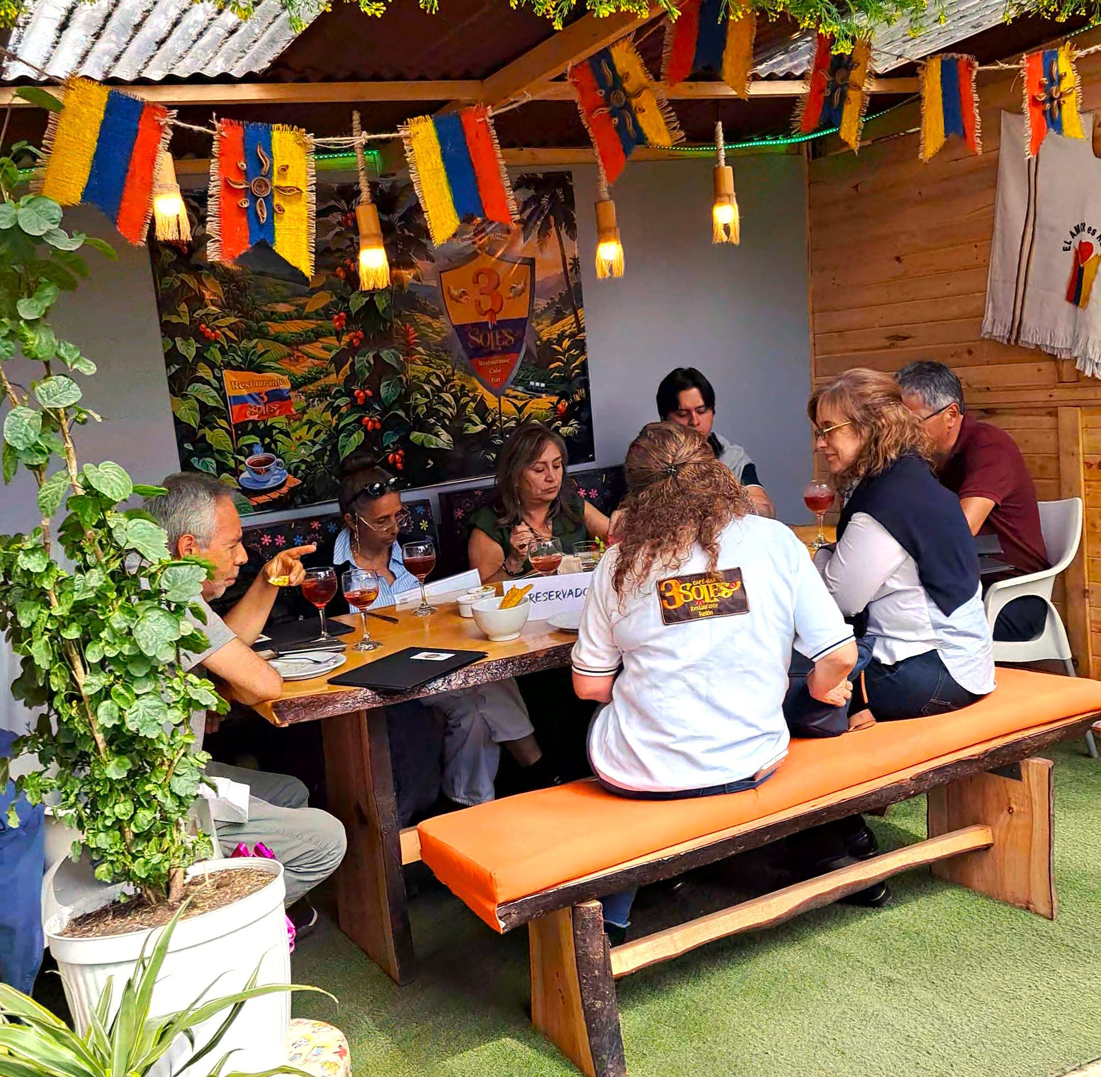 En 3 SOLES nuestra misión es rendir homenaje a la riqueza de las culturas latinoamericanas, fusionando los sabores auténticos de Colombia, México y Perú en un solo lugar. Cada visita es una celebración de nuestras raíces: una experiencia vibrante y única donde el amor por nuestras tradiciones y la calidez humana se
