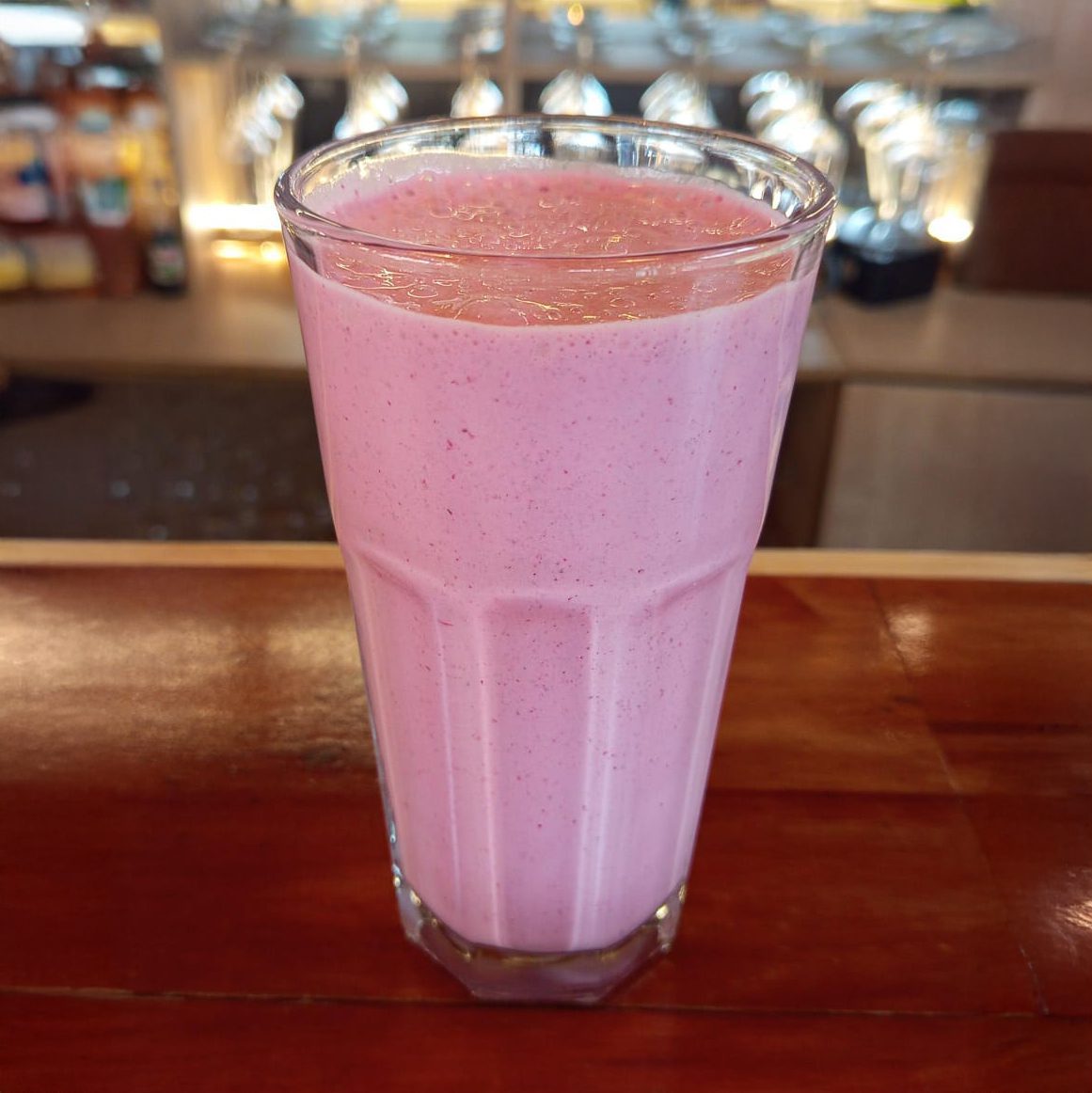 Refrescante jugo de mora natural, disponible en agua o leche.