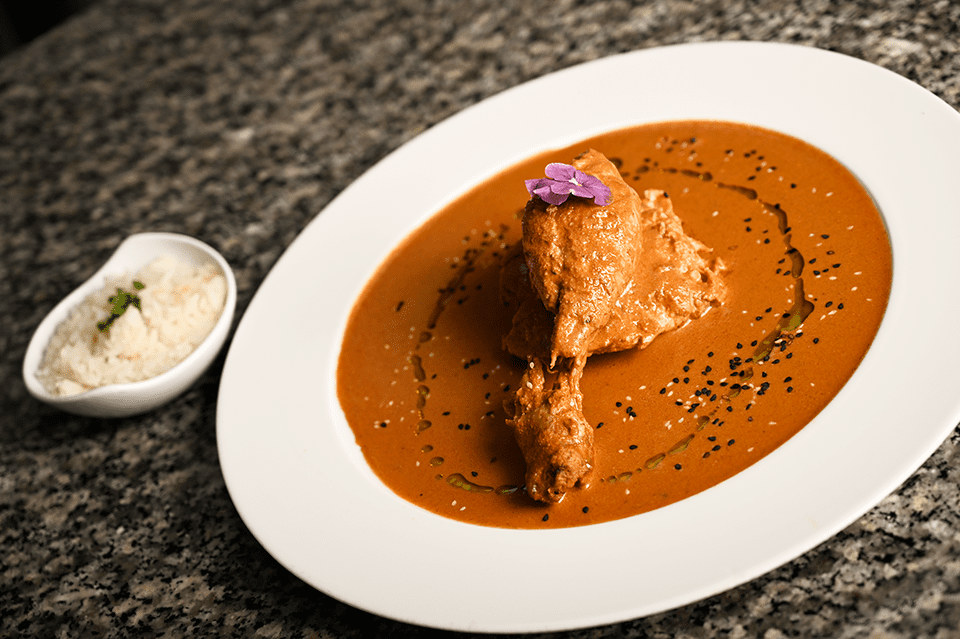 Pierna pernil en salsa espesa de chiles y chocolate, acompañado de arroz blanco y ensalada de la casa.