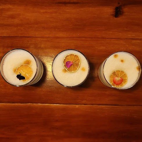 Pisco, clara de huevo, syrup simple y zumo de limón.