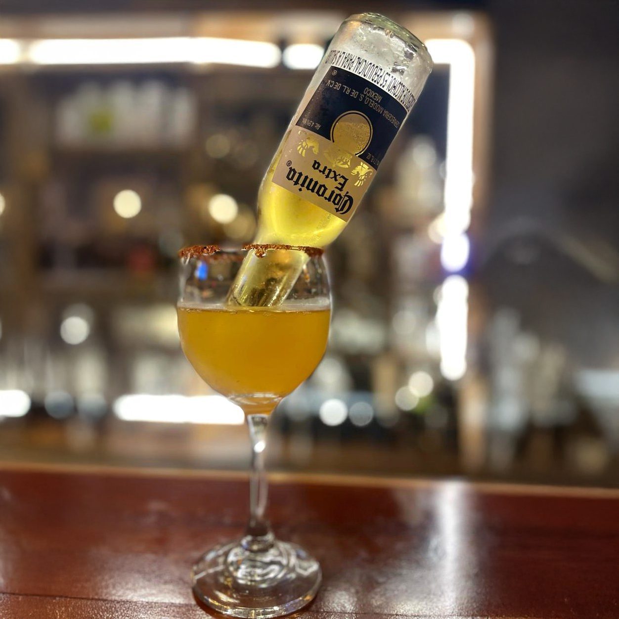 Cóctel refrescante con tequila, miel de agave y un toque tropical. Acompañado con coronita y tajín.